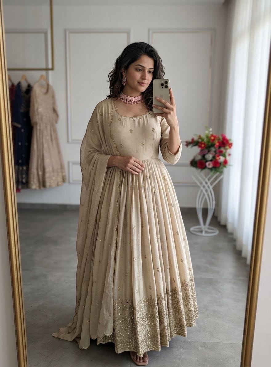 # WORK : COTTON THREAD EMBROIDERY WORK WITH GPO LACE WORK FULLFLAIR